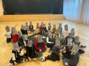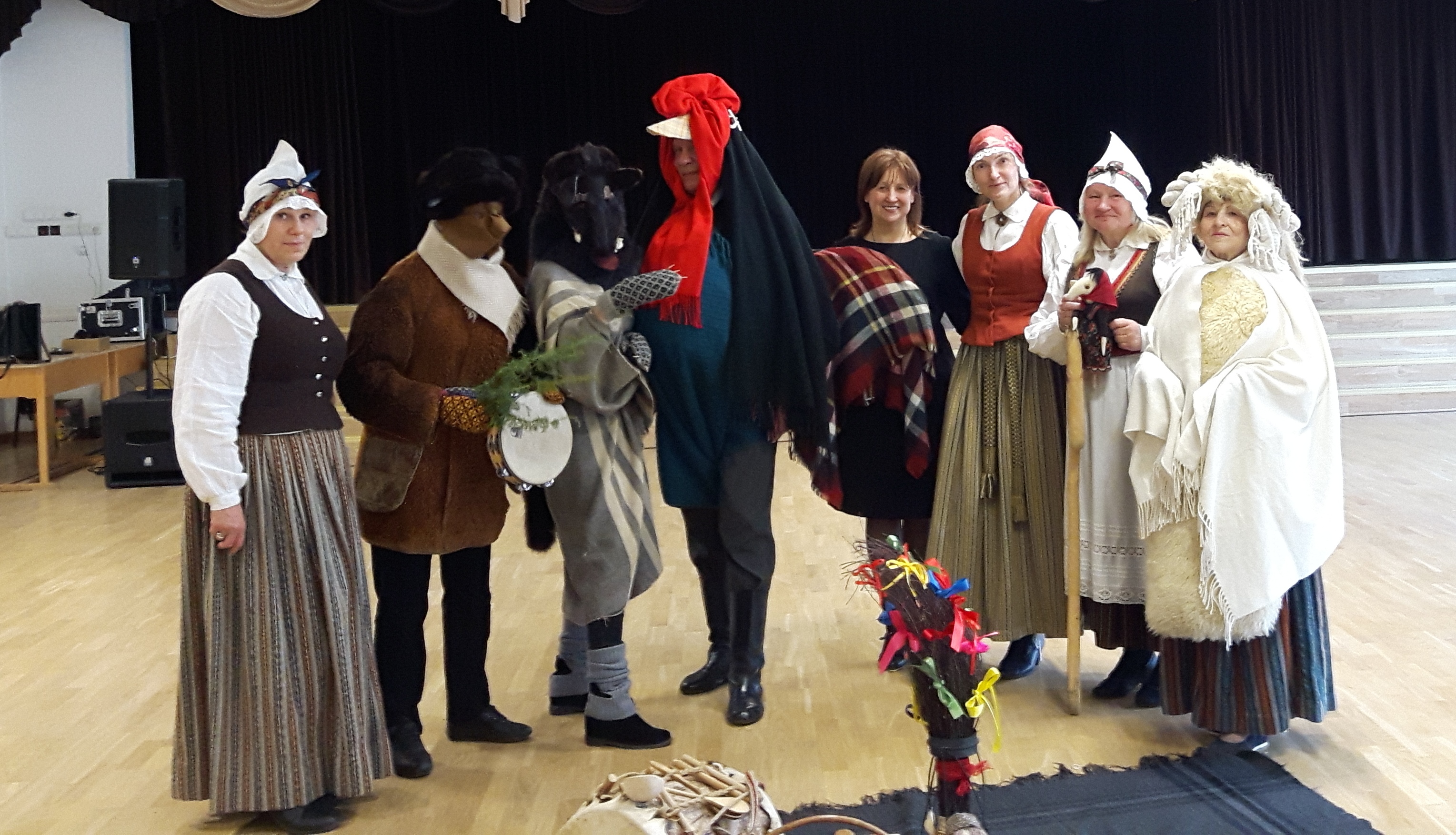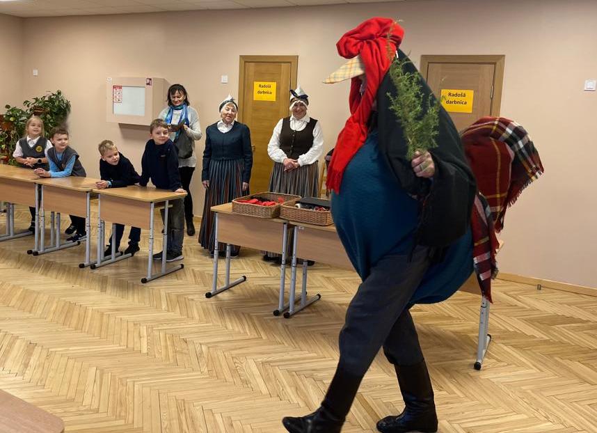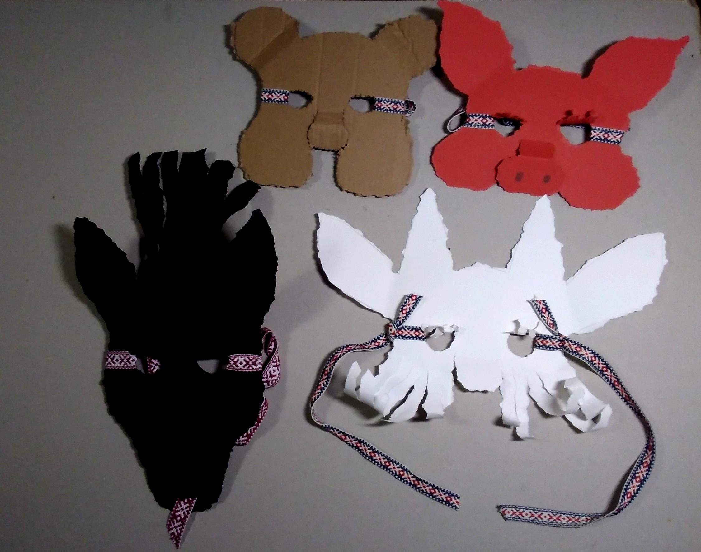 Pirms norises klases ir izvēlējušās vienu no septiņām maskām (kaza, vilks, lācis, vecītis, gailis, cūka). Pirms nodarbības praktiskās daļas tiek nodemonstrēta visā augumā apģērbta tradicionālā maska ar tai raksturīgo uzvedību masku gājienos. Skolēni izgatavo no kartona sagatavēm attiecīgā tēla sejas masku arī sev. Mūzikas nodarbībā skolēni savukārt iepazīst vairākus tradicionālos mūzikas instrumentus un iemācās vienu gadskārtu dziesmu. Dejas nodarbībā skolēni iemācās vairākus tradicionālo deju elementus, apgūst vienu deju, kā arī iesaistās kustību spēlēs atbilstoši savai maskai.