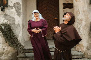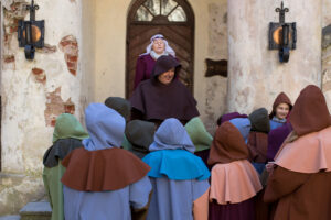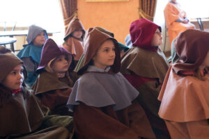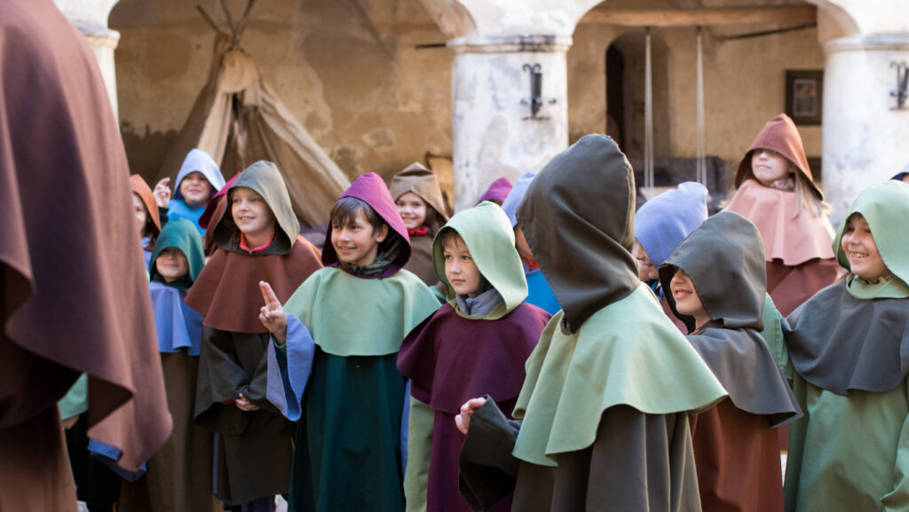 Katrs skolēns Jaunpilī pārtop par īstu viduslaiku skolas audzēkni, ietērpjoties mazā mūciņa tērpā. Mūka un kalpones vadībā bērni iepazīst pils celtniecības noslēpumus, atklāj arhitektūras simboliku, apgūst galma smalkās manieres un bruņinieku ieroču prasmju pamatus. Piedzīvojums ved pa pils pagalmu, torni un noslēpumaino Vīna pagrabu, kur zinātkāre satiekas ar vēstures elpu. Noslēgumā par godu viesiem pils mūrus ieskandina senā lielgabala šāviens – spilgts punkts neaizmirstamai viduslaiku skolēnu pieredzei.