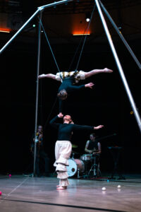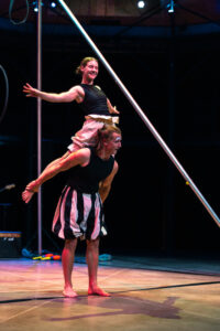 Laikmetīgā cirka izrāde “Aizbēgt līdzi cirkam” stāsta par cilvēkiem, kuri tiešām ir aizbēguši līdzi cirkam. Seši jaunie mākslinieki, skatoties cirka pagātnē un daloties savā pieredzē, ir pētījuši, kāpēc šodien vēl joprojām vilina šī pasaule? Cirks nav tikai smiekli un triki — tā ir vieta, kur mācīties būt kopā, uzticēties un noticēt sev. Tas ir stāsts par piederību un drosmi būt citādam. Izrāde ieved skatītājus gan cirka krāsainajā priekškarā, gan neredzamajā pusē, kur neatlaidība un uzdrīkstēšanās ir ik uz soļa.