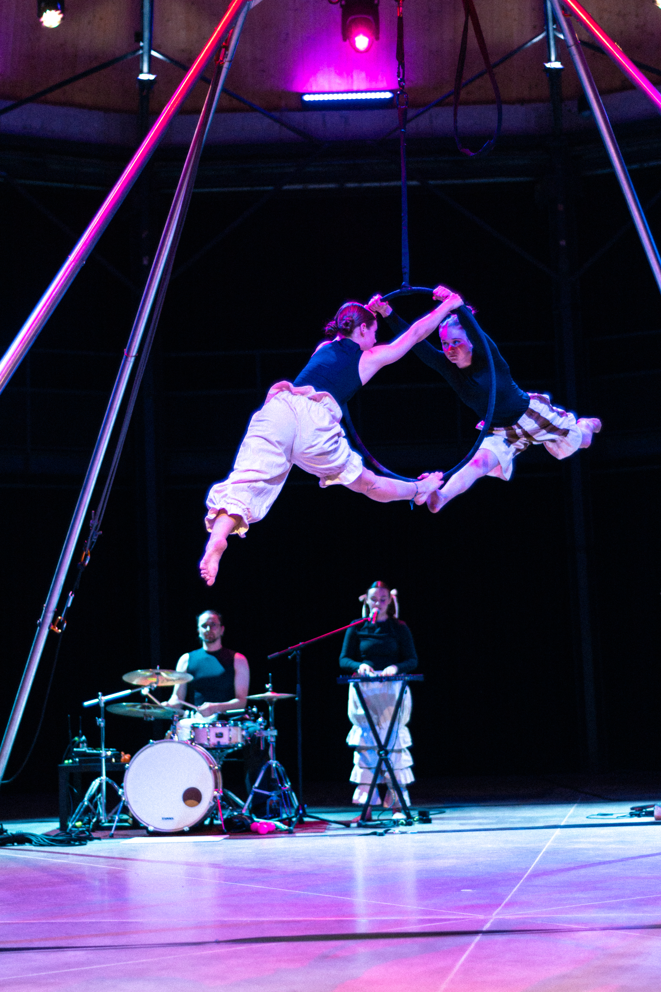 Laikmetīgā cirka izrāde “Aizbēgt līdzi cirkam” stāsta par cilvēkiem, kuri tiešām ir aizbēguši līdzi cirkam. Seši jaunie mākslinieki, skatoties cirka pagātnē un daloties savā pieredzē, ir pētījuši, kāpēc šodien vēl joprojām vilina šī pasaule? Cirks nav tikai smiekli un triki — tā ir vieta, kur mācīties būt kopā, uzticēties un noticēt sev. Tas ir stāsts par piederību un drosmi būt citādam. Izrāde ieved skatītājus gan cirka krāsainajā priekškarā, gan neredzamajā pusē, kur neatlaidība un uzdrīkstēšanās ir ik uz soļa.