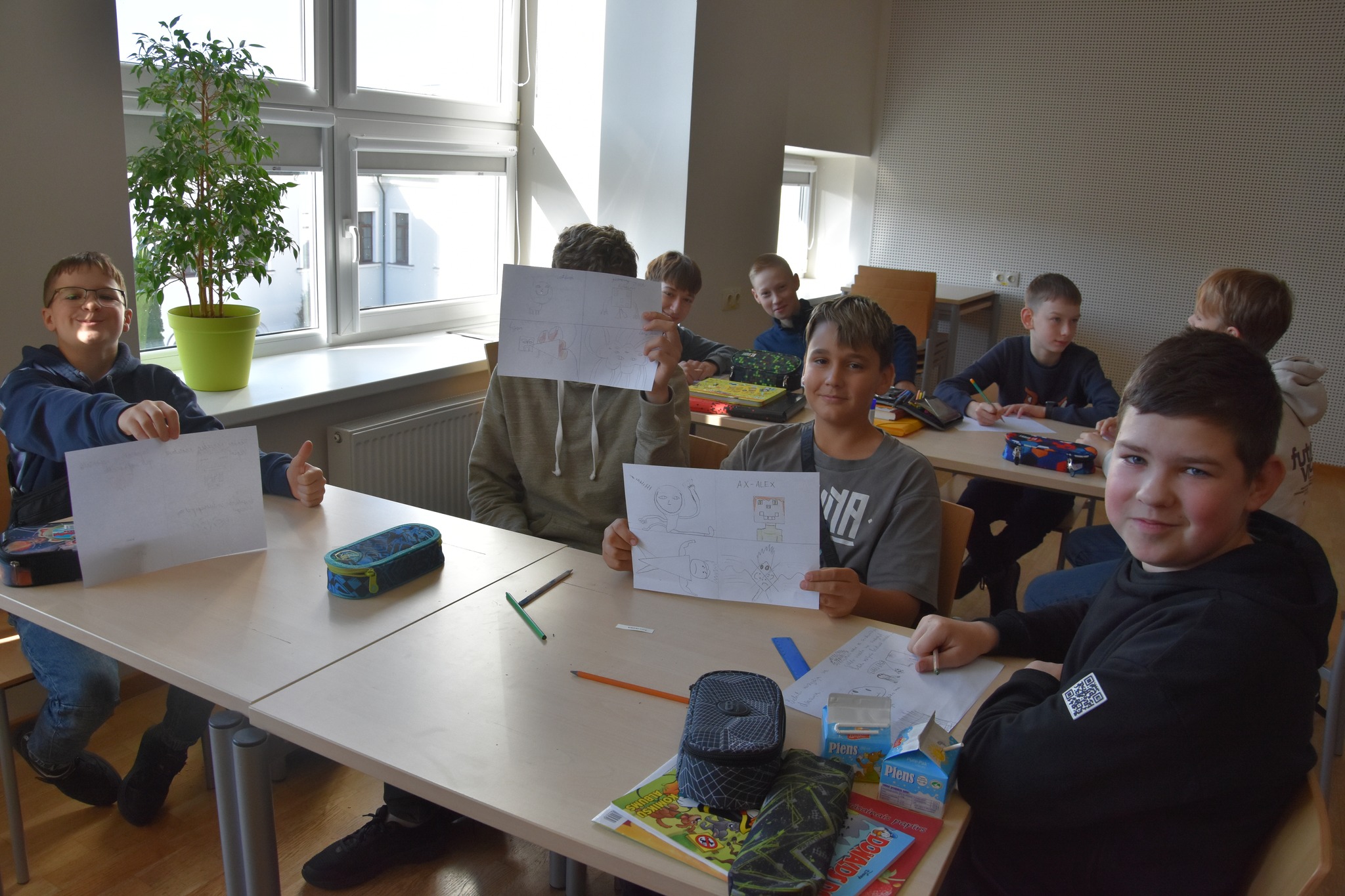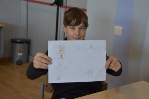 - Markuss: “Es iemācījos, kā pareizi veido komiksu, kam jāpievērš uzmanība, lai nodotu vēstījumu, ka ne vienmēr ir nepieciešams teksts. Nodarbības vadītāji bija ar labu humora izjūtu, pozitīvi un atbalstoši.”