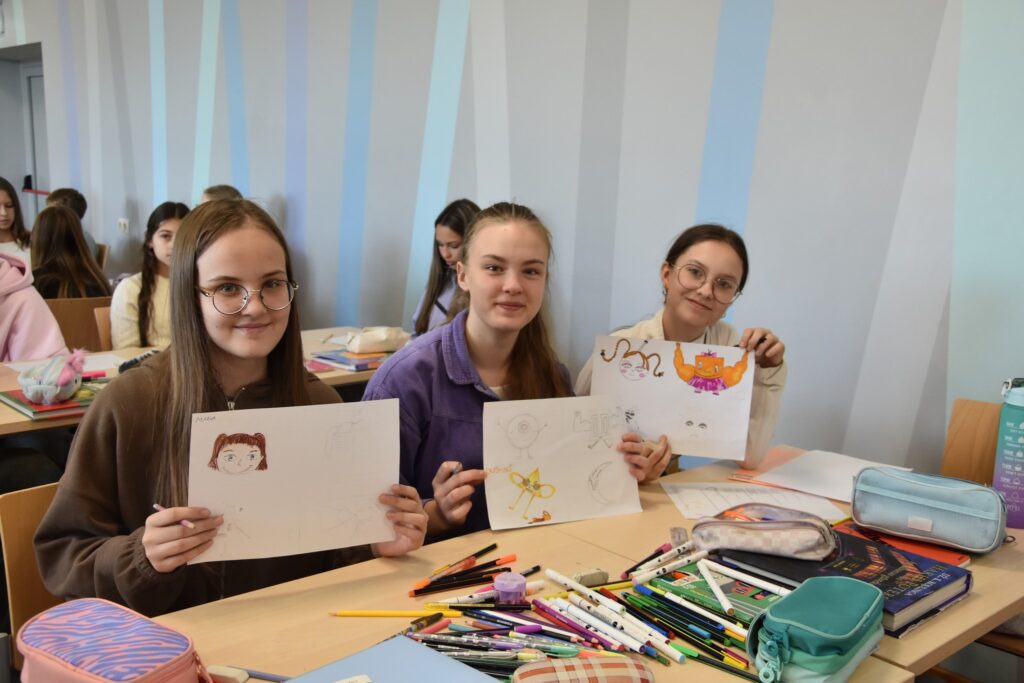- Violeta: “Man patika, ka nodarbības vadītāji sadarbojās ar mums un ne tikai mācīja, ka zīmēt komiksu, bet arī paralēli to darīja uz tāfeles. Iemācījos, kā vienkāršu figūru pārvērst stilīgā komiksa varonī.”